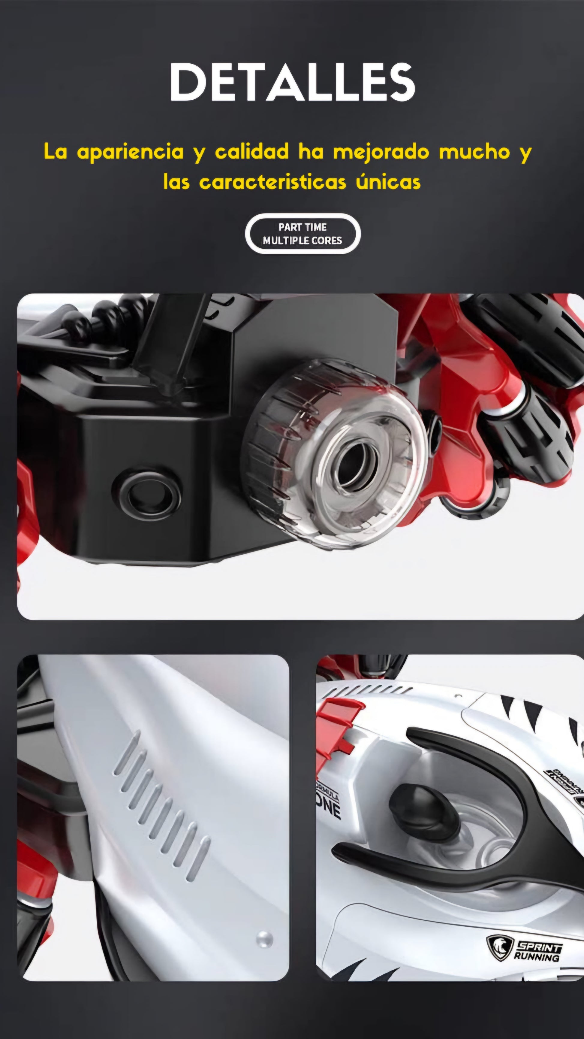 El TurboDrift CX-88 está diseñado para la máxima diversión. Su rotación y deriva de 360° te permite hacer movimientos multidireccionales, mientras que sus llantas mecánicas con rodillos especiales para acrobacias te dan un control total.
