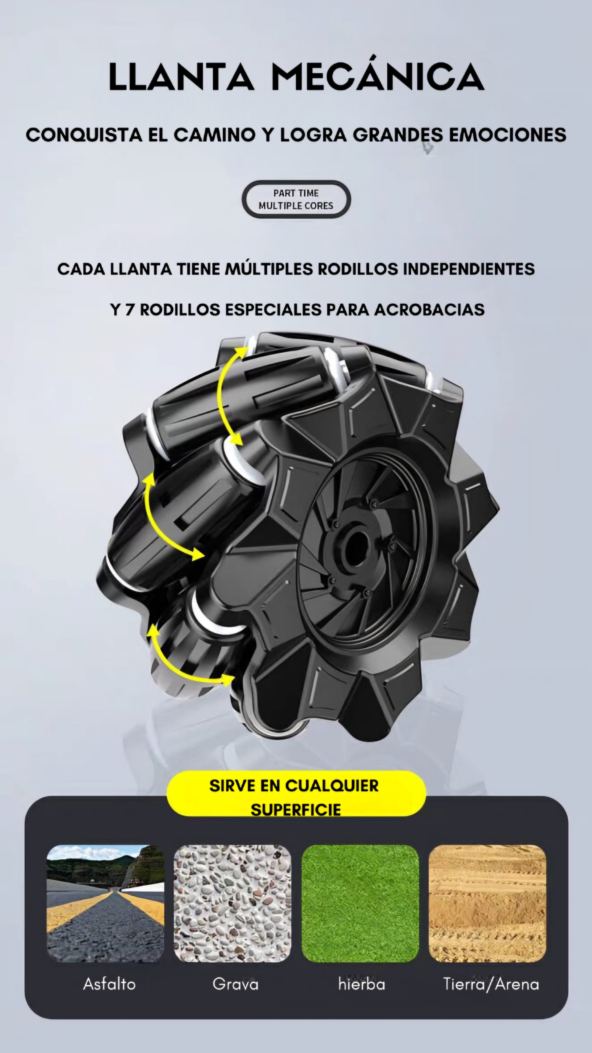 🔧 Llantas Mckenna Todoterreno: Diseñadas para conquistar cualquier superficie. Con sus múltiples rodillos independientes, estas llantas te permiten deslizarte sobre asfalto, grava, hierba e incluso tierra. ¡No hay límites para la diversión!